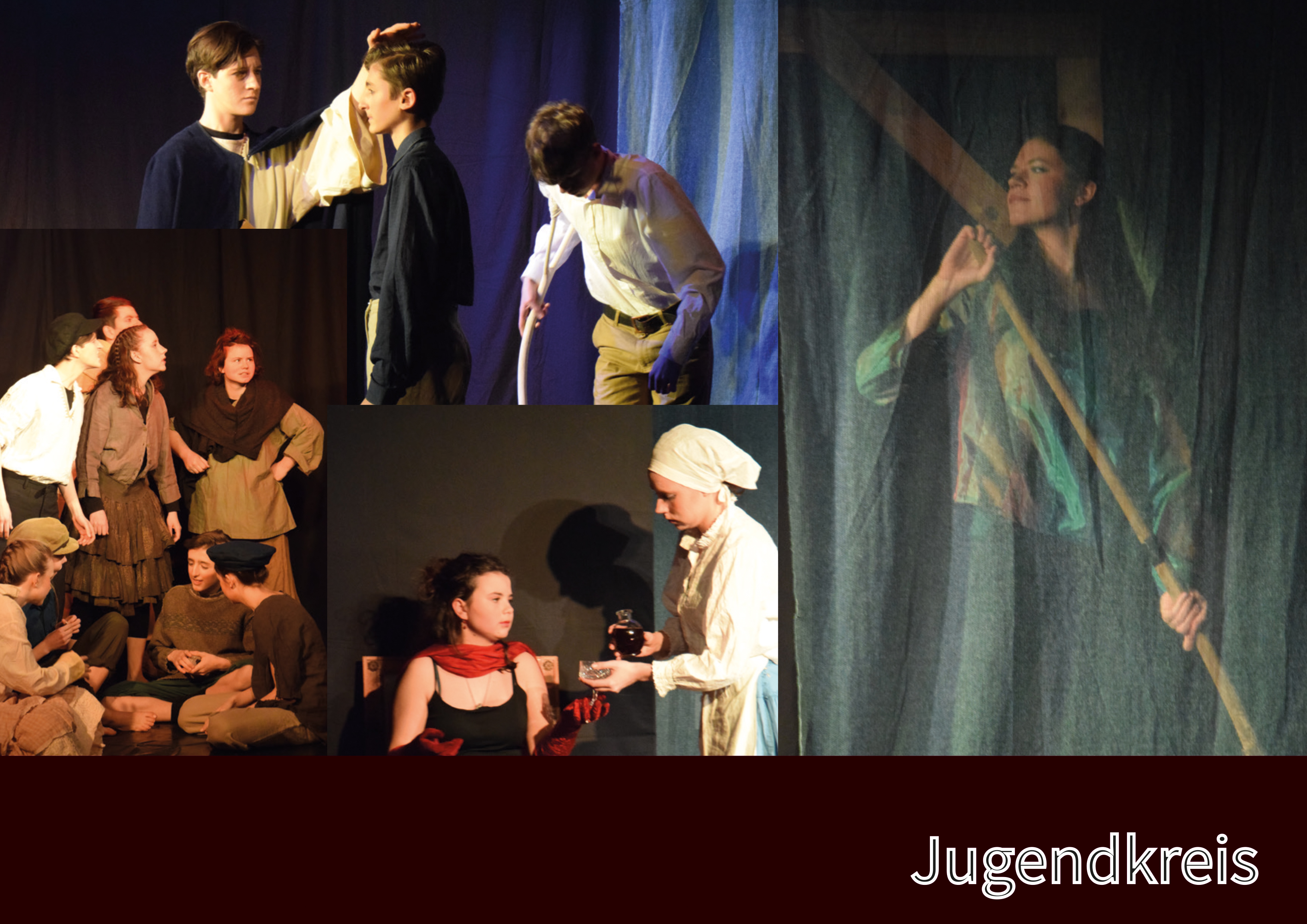 Willkommen sind alle, die Freude haben, die Welt des Jugendkreises und des Theaters kennenzulernen. Wer nicht auf der Bühne stehen will, sich aber gerne handwerklich betätigt, kocht, Kostüme schneidert, organisiert, designt oder beleuchtet, ist ebenso willkommen. Der Jugendkreis ist mehr als Theater spielen - er ist eine wunderbare Zeit mit Freunden.